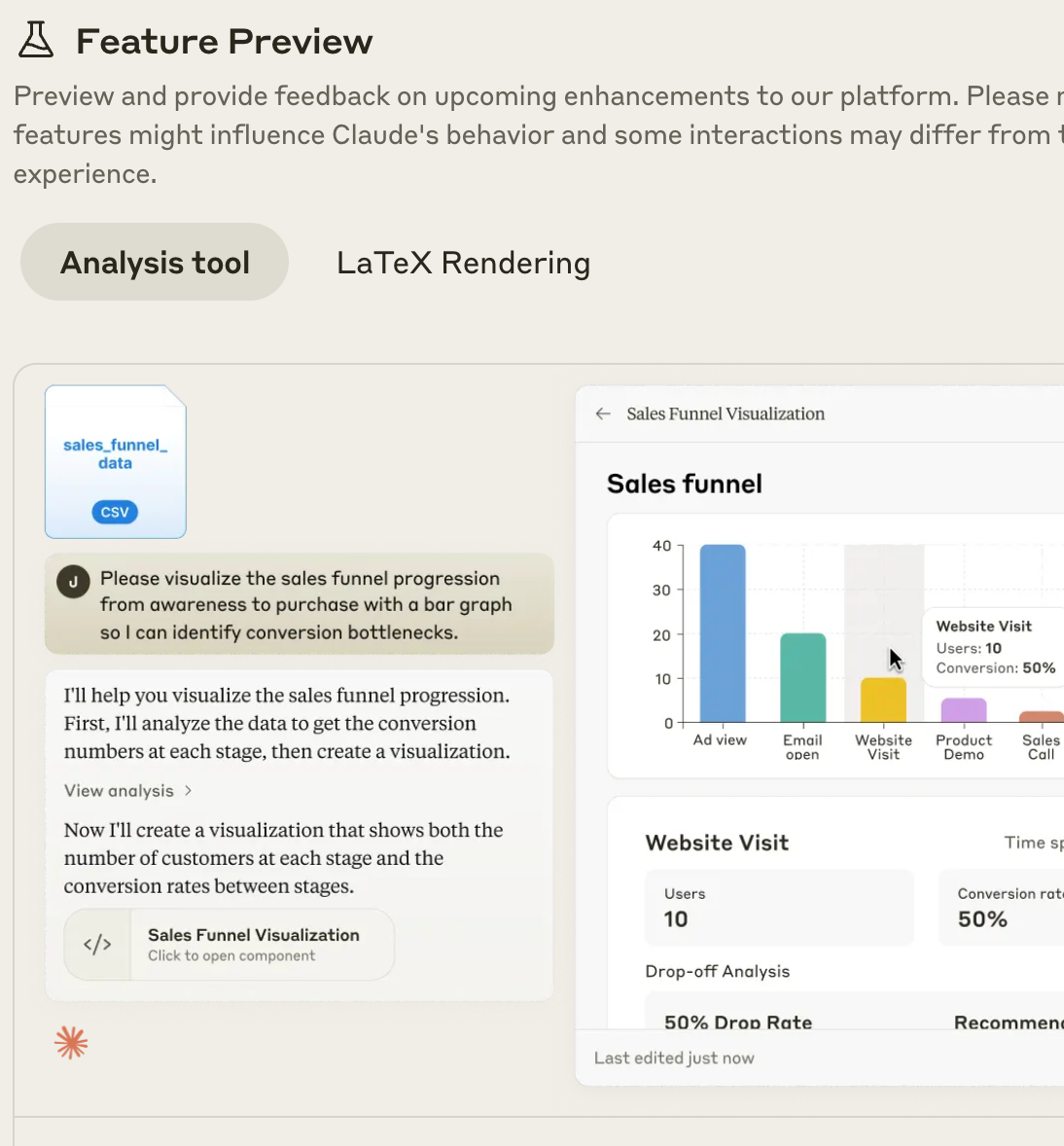 We work with data a lot and working with data is another area where AI is becoming more useful. I'll often throw a spreadsheet into both Claude and ChatGPT with the same analytics prompt. With Claude’s experimental analysis feature enabled, I’ve been impressed by its outputs. Comparing responses from both models will often provide little nuances for me to think about, allowing for more comprehensive analysis.